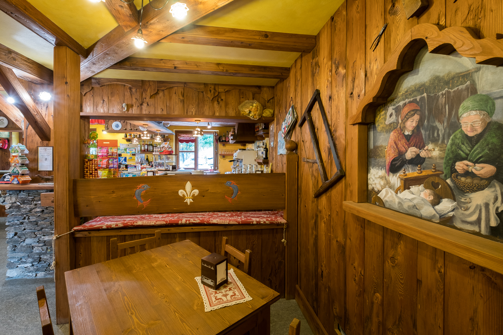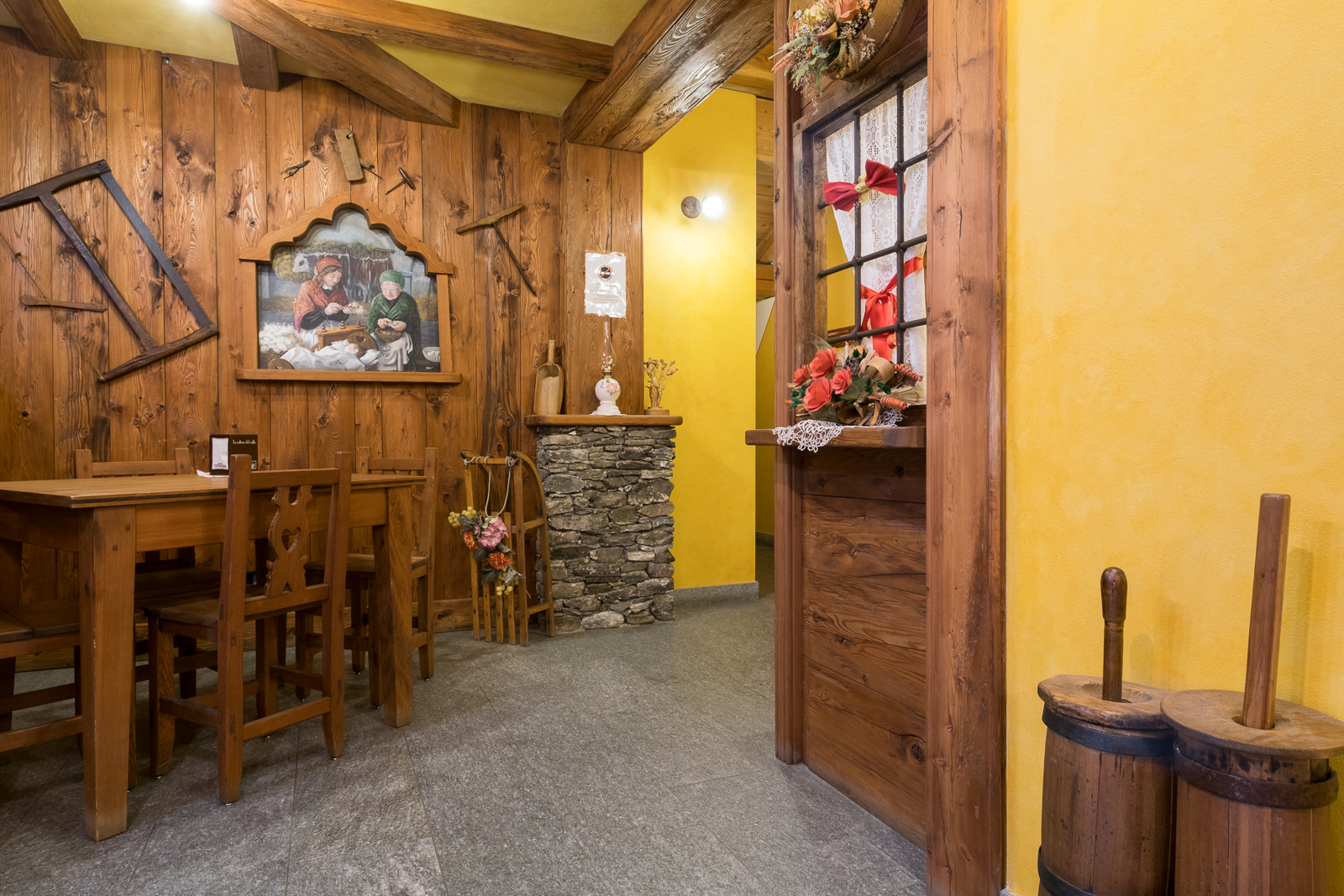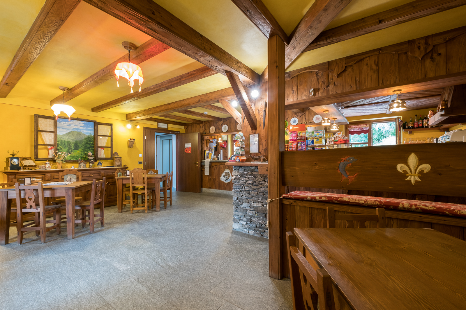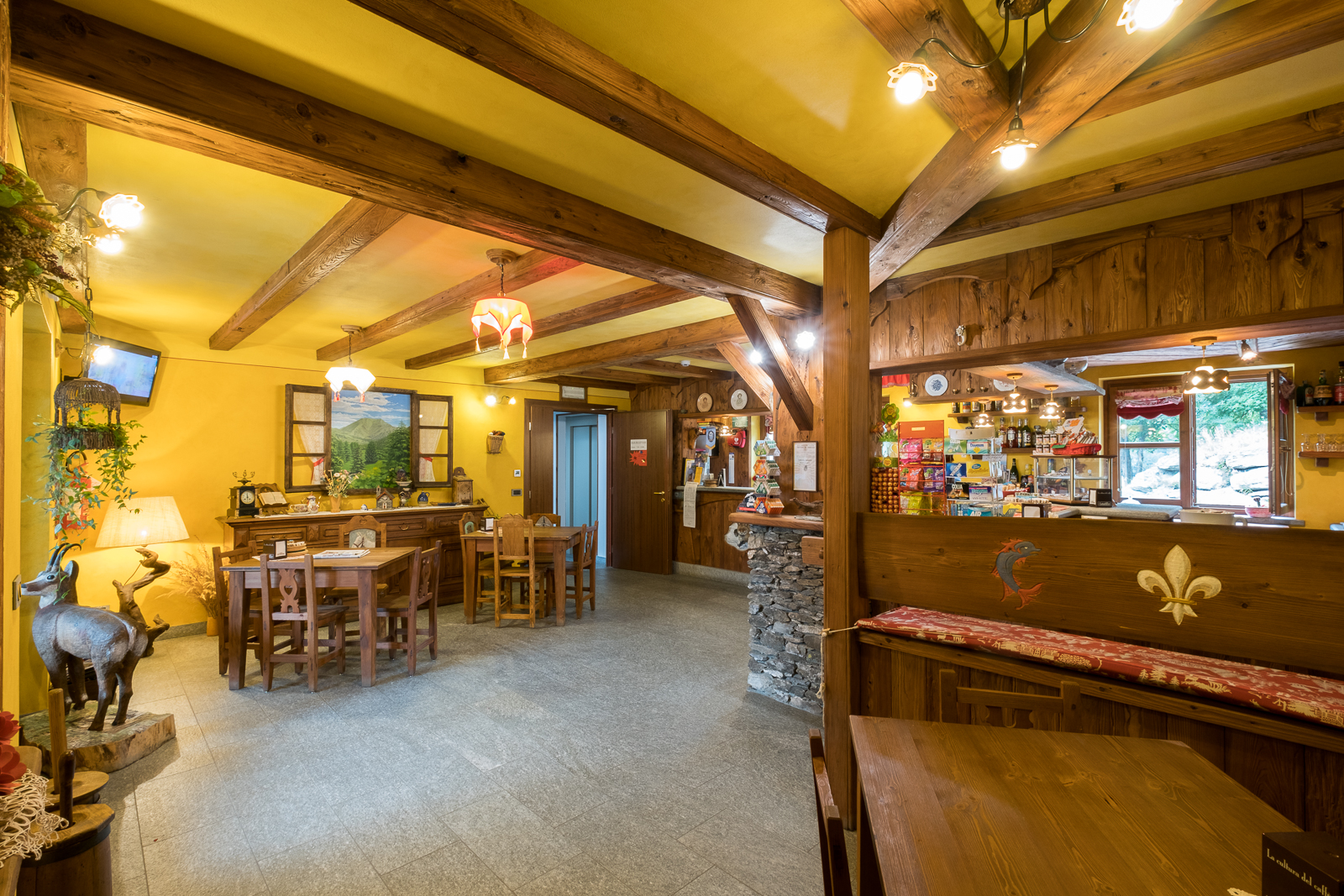 L' arredamento rustico, con la contrapposizione tra legno antico e pietra, rendono particolarmente caratteristica la zona bar-reception. Dei pregiati dipinti su losa e murales completano un lavoro di alta scuola artistica.
